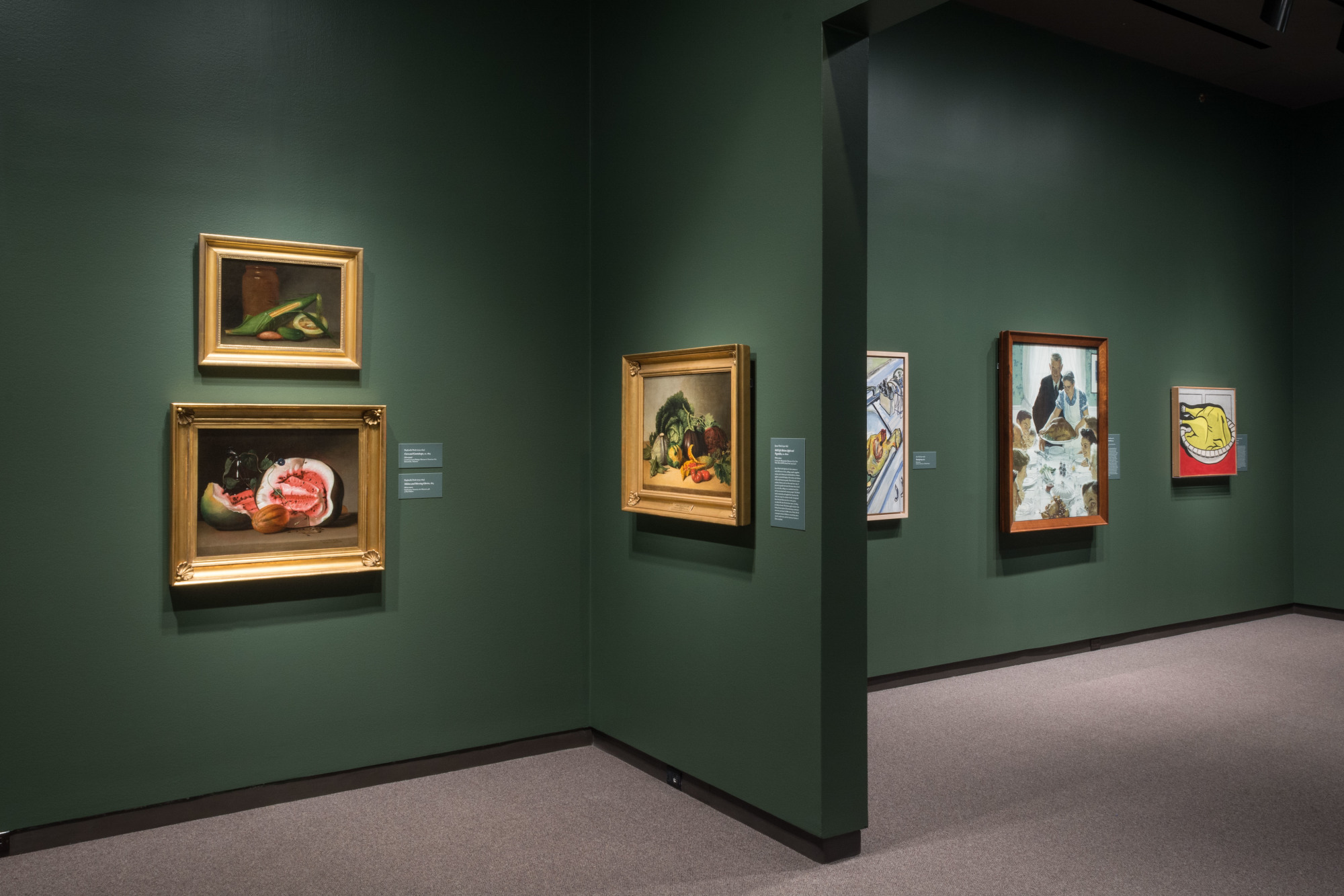 Yet paintings of edibles also speak volumes about their cultural context. From this country’s earliest years, American artists have used still life painting to express cultural, political, and social values, elevating the subject to a significant artistic language. The topic of food allowed them both to celebrate and critique their society, expressing ideas relating to politics, race, class, gender, commerce, and how these categories define American identity. Art and Appetite includes many iconic works such as Nighthawks (1942) by Edward Hopper, Freedom from Want (1942) by Norman Rockwell, and Campbell’s Soup (1965) by Andy Warhol.