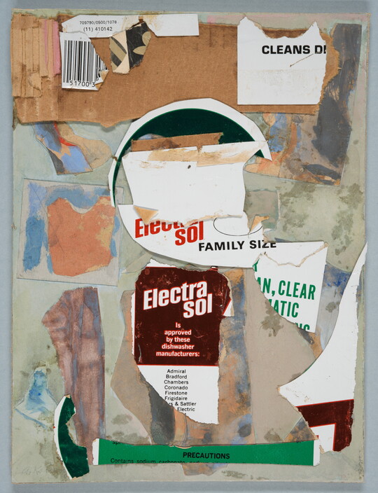 Collage of commercial packaging, corrugated cardboard, mixed media, and graphite 2023.20