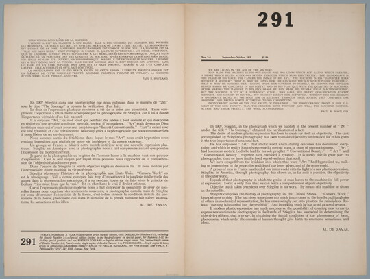 The Carter collection includes representative work across Stieglitz’s photographic career, from early masterpieces like Sun Rays—Paula, Berlin through intimate portraits of his future wife O’Keeffe to experiments with abstraction called “Equivalents” and stark urban visions like From the Shelton, Looking West. The Museum also holds complete sets of all three of his important periodicals: Camera Notes (1897–1903), Camera Work (1903–17), and 291 (1915–16).