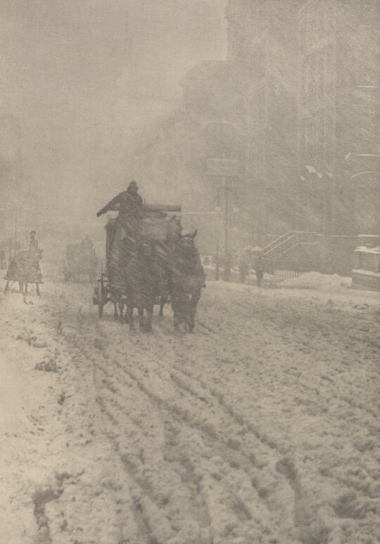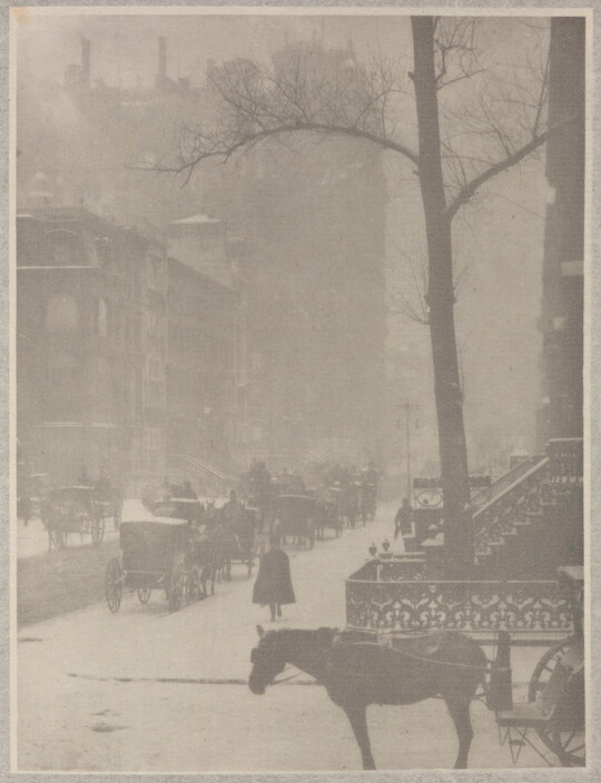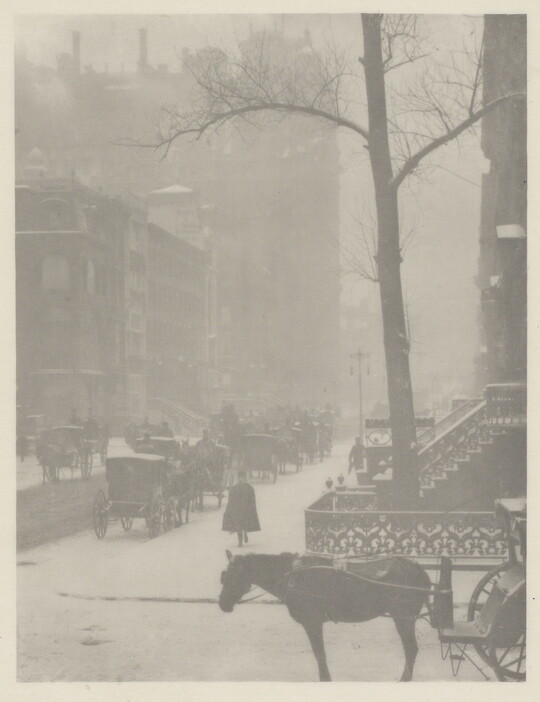 The Carter collection includes representative work across Stieglitz’s photographic career, from early masterpieces like Sun Rays—Paula, Berlin through intimate portraits of his future wife O’Keeffe to experiments with abstraction called “Equivalents” and stark urban visions like From the Shelton, Looking West. The Museum also holds complete sets of all three of his important periodicals: Camera Notes (1897–1903), Camera Work (1903–17), and 291 (1915–16).