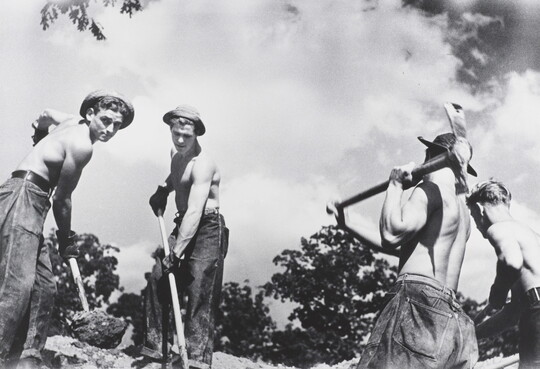 After graduating from college and working as a writer for local newspapers, Carl Mydans joined the Farm Security Administration (FSA) as a photojournalist in 1935. In this role, Mydans depicted the effects of the Great Depression in rural areas, focusing on farm workers in Arkansas and the broader American South. In 1936, Mydans became one of the first staff photographers for LIFE magazine, and it was during this time that he produced the most important photographs of his career. He photographed Europe and Asia during World War II, documenting events such as the liberation of the Philippines, the bombing of Chongqing in China, and the signing of the Japanese Instrument of Surrender. Mydans also photographed the Fukui Earthquake, the Korean War, and Moscow under Soviet rule. With his wife, American writer Shelley Smith Mydans, he was taken as a prisoner of war by the Japanese army from 1942 to 1944. The couple co-authored the book The Violent Peace: A Report on Wars in the Postwar World (1968).