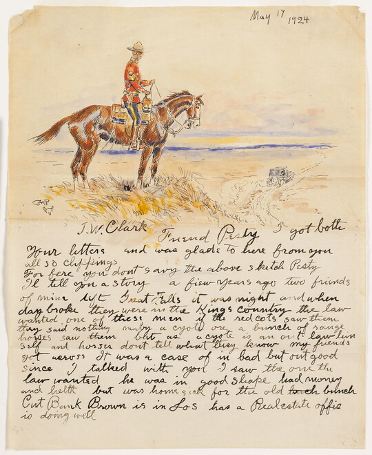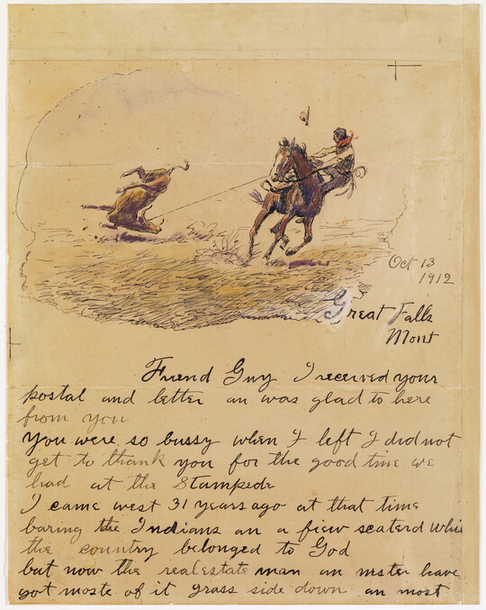 Few artists have shaped the popular imagery of the cowboy like Charles M. Russell. Born in St. Louis, Russell worked for a time as a ranch hand in Montana before taking up painting and illustration full time. By the early 1900s, his rough-and-tumble portrayals of Montana ranch life had captured the attention of patrons in Los Angeles and New York, who interpreted his work as an authentic portrayal of a vanishing way of life. Russell was an admirer of western dime novels and films, and he used his talents as a storyteller to help shape pop culture imaginings of the Old West, even working as a consultant in Hollywood. The Carter offers one of the largest museum collections of Russell’s work—more than 300 paintings, sculptures, watercolors, drawings, and illustrations, ranging from his earliest known paintings to posthumous bronze sculptures cast under the supervision of his widow, Nancy Cooper Russell.