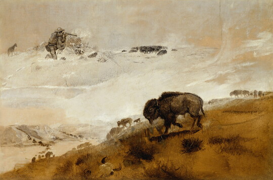 Few artists have shaped the popular imagery of the cowboy like Charles M. Russell. Born in St. Louis, Russell worked for a time as a ranch hand in Montana before taking up painting and illustration full time. By the early 1900s, his rough-and-tumble portrayals of Montana ranch life had captured the attention of patrons in Los Angeles and New York, who interpreted his work as an authentic portrayal of a vanishing way of life. Russell was an admirer of western dime novels and films, and he used his talents as a storyteller to help shape pop culture imaginings of the Old West, even working as a consultant in Hollywood. The Carter offers one of the largest museum collections of Russell’s work—more than 300 paintings, sculptures, watercolors, drawings, and illustrations, ranging from his earliest known paintings to posthumous bronze sculptures cast under the supervision of his widow, Nancy Cooper Russell.