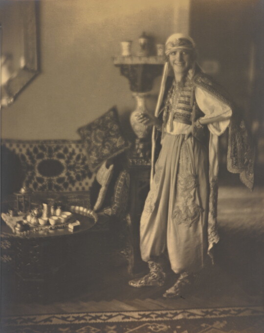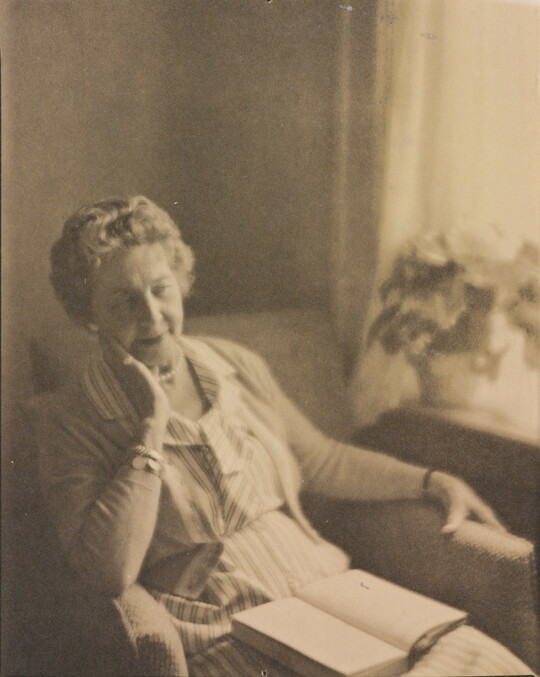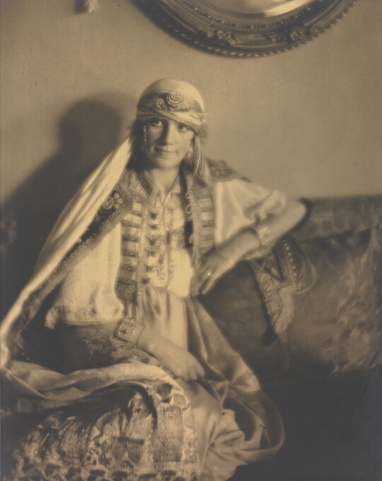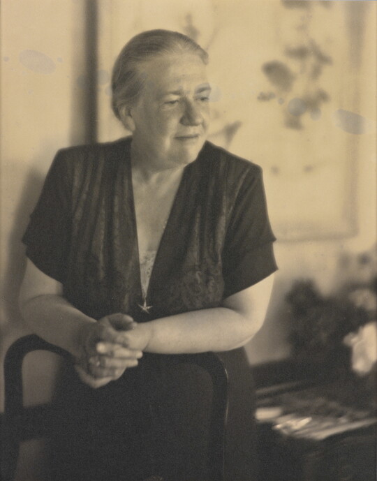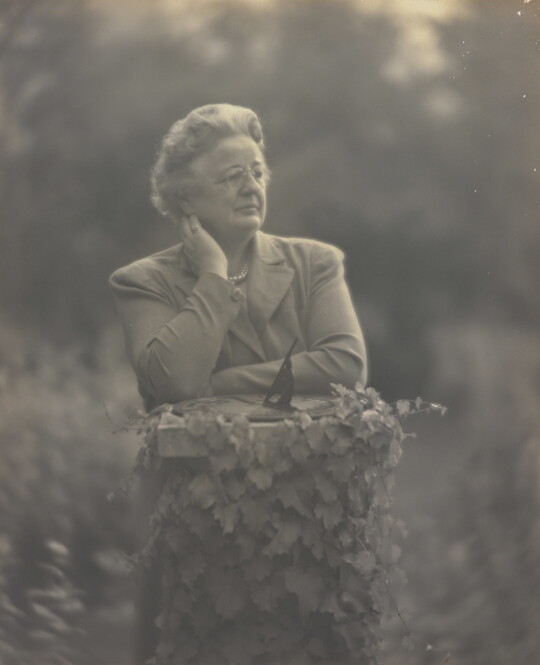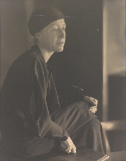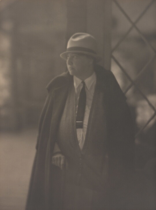 In 1915 Sipprell moved to New York and established her own photography studio, fulfilling a passion she’d developed as a child while assisting her brother with his studio in Buffalo. She quickly integrated into the New York pictorialist community, taking classes from Clarence H. White and befriending Gertrude Käsebier and Karl Struss. Although pictorialism, a painterly style characterized by soft-focus images and expressive printing processes, gradually became less popular, Sipprell remained dedicated to it. Sipprell lived exuberantly in New York, where she developed passions for drinking bourbon, wearing capes, and driving fast convertibles and became well-known for portraits that convey not just the appearance but the character of her subjects.