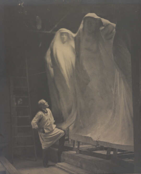 In 1915 Sipprell moved to New York and established her own photography studio, fulfilling a passion she’d developed as a child while assisting her brother with his studio in Buffalo. She quickly integrated into the New York pictorialist community, taking classes from Clarence H. White and befriending Gertrude Käsebier and Karl Struss. Although pictorialism, a painterly style characterized by soft-focus images and expressive printing processes, gradually became less popular, Sipprell remained dedicated to it. Sipprell lived exuberantly in New York, where she developed passions for drinking bourbon, wearing capes, and driving fast convertibles and became well-known for portraits that convey not just the appearance but the character of her subjects.