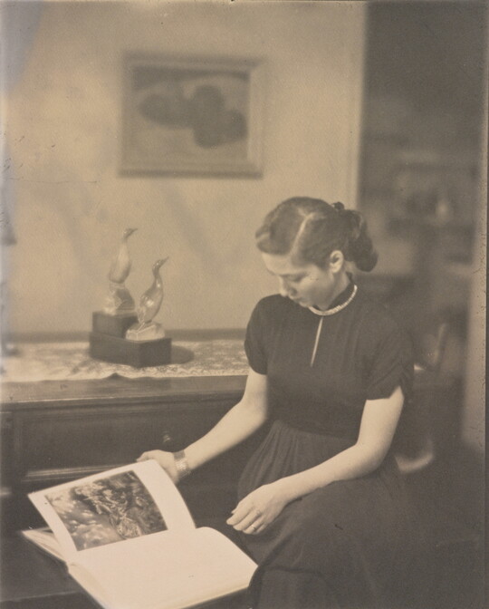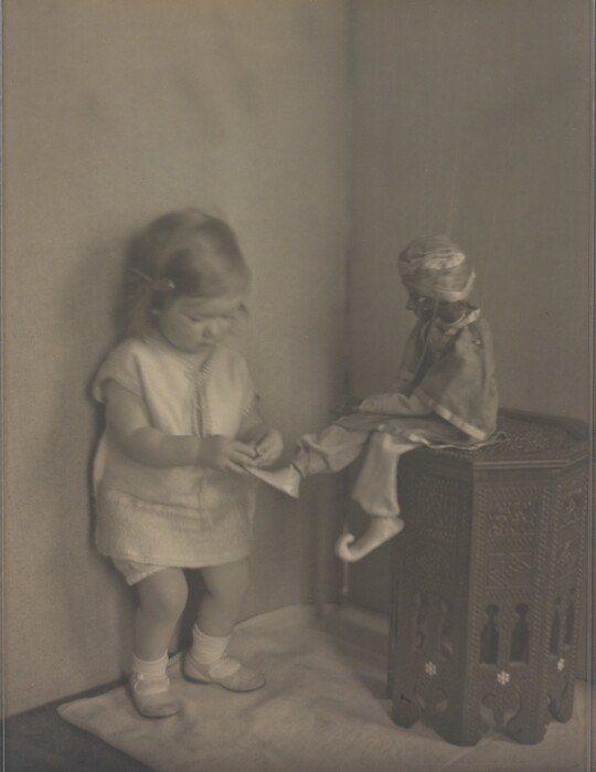 In 1915 Sipprell moved to New York and established her own photography studio, fulfilling a passion she’d developed as a child while assisting her brother with his studio in Buffalo. She quickly integrated into the New York pictorialist community, taking classes from Clarence H. White and befriending Gertrude Käsebier and Karl Struss. Although pictorialism, a painterly style characterized by soft-focus images and expressive printing processes, gradually became less popular, Sipprell remained dedicated to it. Sipprell lived exuberantly in New York, where she developed passions for drinking bourbon, wearing capes, and driving fast convertibles and became well-known for portraits that convey not just the appearance but the character of her subjects.