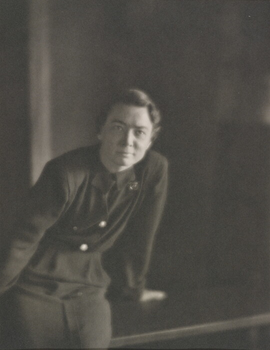 In 1915 Sipprell moved to New York and established her own photography studio, fulfilling a passion she’d developed as a child while assisting her brother with his studio in Buffalo. She quickly integrated into the New York pictorialist community, taking classes from Clarence H. White and befriending Gertrude Käsebier and Karl Struss. Although pictorialism, a painterly style characterized by soft-focus images and expressive printing processes, gradually became less popular, Sipprell remained dedicated to it. Sipprell lived exuberantly in New York, where she developed passions for drinking bourbon, wearing capes, and driving fast convertibles and became well-known for portraits that convey not just the appearance but the character of her subjects.