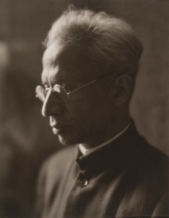 In 1915 Sipprell moved to New York and established her own photography studio, fulfilling a passion she’d developed as a child while assisting her brother with his studio in Buffalo. She quickly integrated into the New York pictorialist community, taking classes from Clarence H. White and befriending Gertrude Käsebier and Karl Struss. Although pictorialism, a painterly style characterized by soft-focus images and expressive printing processes, gradually became less popular, Sipprell remained dedicated to it. Sipprell lived exuberantly in New York, where she developed passions for drinking bourbon, wearing capes, and driving fast convertibles and became well-known for portraits that convey not just the appearance but the character of her subjects.