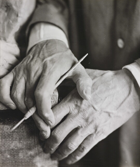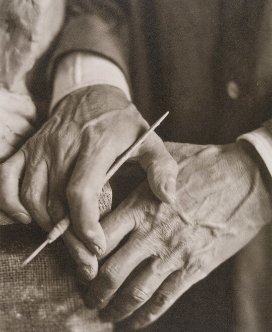 In 1915 Sipprell moved to New York and established her own photography studio, fulfilling a passion she’d developed as a child while assisting her brother with his studio in Buffalo. She quickly integrated into the New York pictorialist community, taking classes from Clarence H. White and befriending Gertrude Käsebier and Karl Struss. Although pictorialism, a painterly style characterized by soft-focus images and expressive printing processes, gradually became less popular, Sipprell remained dedicated to it. Sipprell lived exuberantly in New York, where she developed passions for drinking bourbon, wearing capes, and driving fast convertibles and became well-known for portraits that convey not just the appearance but the character of her subjects.