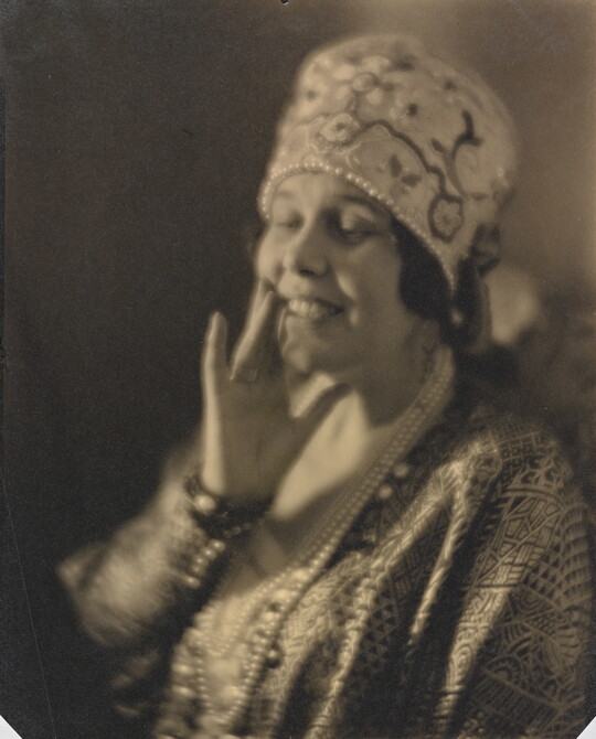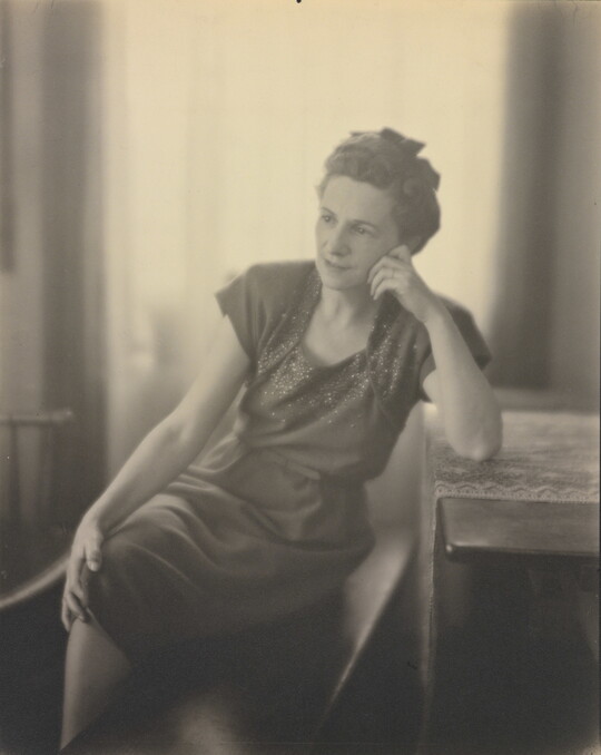 In 1915 Sipprell moved to New York and established her own photography studio, fulfilling a passion she’d developed as a child while assisting her brother with his studio in Buffalo. She quickly integrated into the New York pictorialist community, taking classes from Clarence H. White and befriending Gertrude Käsebier and Karl Struss. Although pictorialism, a painterly style characterized by soft-focus images and expressive printing processes, gradually became less popular, Sipprell remained dedicated to it. Sipprell lived exuberantly in New York, where she developed passions for drinking bourbon, wearing capes, and driving fast convertibles and became well-known for portraits that convey not just the appearance but the character of her subjects.