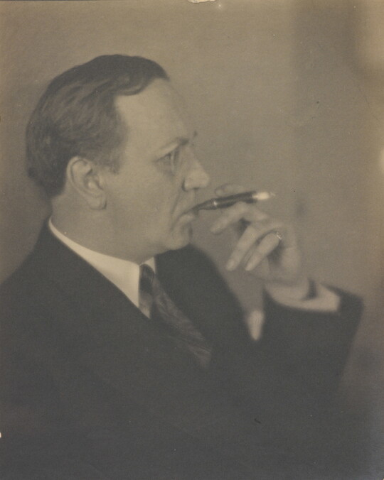 In 1915 Sipprell moved to New York and established her own photography studio, fulfilling a passion she’d developed as a child while assisting her brother with his studio in Buffalo. She quickly integrated into the New York pictorialist community, taking classes from Clarence H. White and befriending Gertrude Käsebier and Karl Struss. Although pictorialism, a painterly style characterized by soft-focus images and expressive printing processes, gradually became less popular, Sipprell remained dedicated to it. Sipprell lived exuberantly in New York, where she developed passions for drinking bourbon, wearing capes, and driving fast convertibles and became well-known for portraits that convey not just the appearance but the character of her subjects.