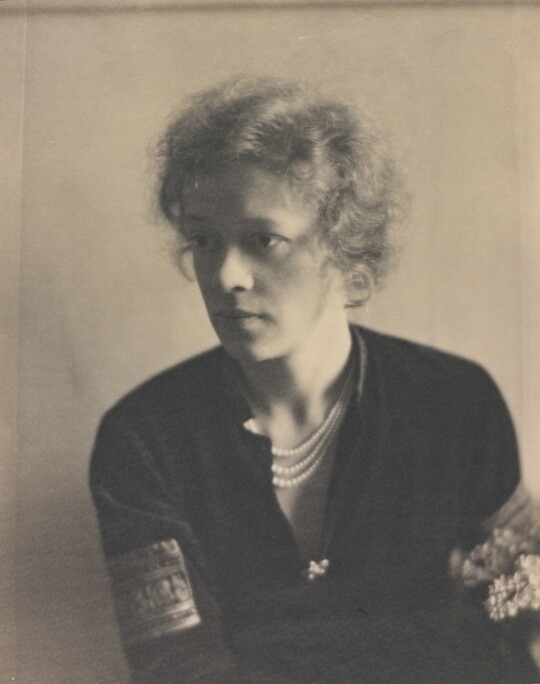 In 1915 Sipprell moved to New York and established her own photography studio, fulfilling a passion she’d developed as a child while assisting her brother with his studio in Buffalo. She quickly integrated into the New York pictorialist community, taking classes from Clarence H. White and befriending Gertrude Käsebier and Karl Struss. Although pictorialism, a painterly style characterized by soft-focus images and expressive printing processes, gradually became less popular, Sipprell remained dedicated to it. Sipprell lived exuberantly in New York, where she developed passions for drinking bourbon, wearing capes, and driving fast convertibles and became well-known for portraits that convey not just the appearance but the character of her subjects.