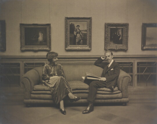 In 1915 Sipprell moved to New York and established her own photography studio, fulfilling a passion she’d developed as a child while assisting her brother with his studio in Buffalo. She quickly integrated into the New York pictorialist community, taking classes from Clarence H. White and befriending Gertrude Käsebier and Karl Struss. Although pictorialism, a painterly style characterized by soft-focus images and expressive printing processes, gradually became less popular, Sipprell remained dedicated to it. Sipprell lived exuberantly in New York, where she developed passions for drinking bourbon, wearing capes, and driving fast convertibles and became well-known for portraits that convey not just the appearance but the character of her subjects.