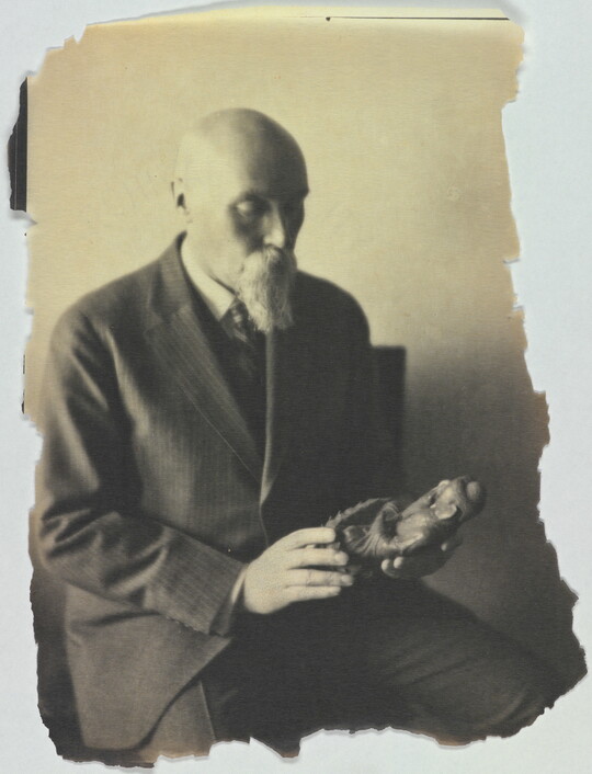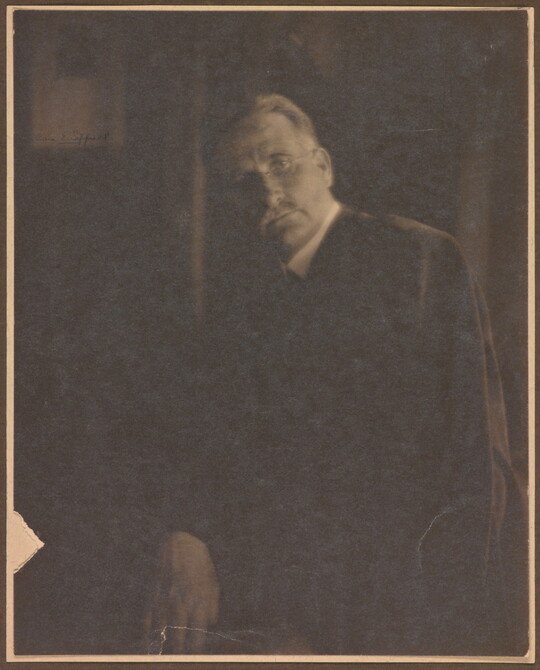 In 1915 Sipprell moved to New York and established her own photography studio, fulfilling a passion she’d developed as a child while assisting her brother with his studio in Buffalo. She quickly integrated into the New York pictorialist community, taking classes from Clarence H. White and befriending Gertrude Käsebier and Karl Struss. Although pictorialism, a painterly style characterized by soft-focus images and expressive printing processes, gradually became less popular, Sipprell remained dedicated to it. Sipprell lived exuberantly in New York, where she developed passions for drinking bourbon, wearing capes, and driving fast convertibles and became well-known for portraits that convey not just the appearance but the character of her subjects.
