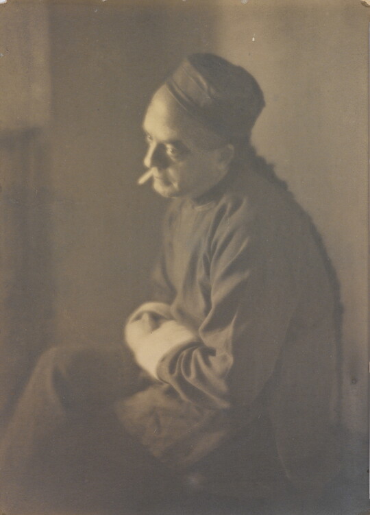 In 1915 Sipprell moved to New York and established her own photography studio, fulfilling a passion she’d developed as a child while assisting her brother with his studio in Buffalo. She quickly integrated into the New York pictorialist community, taking classes from Clarence H. White and befriending Gertrude Käsebier and Karl Struss. Although pictorialism, a painterly style characterized by soft-focus images and expressive printing processes, gradually became less popular, Sipprell remained dedicated to it. Sipprell lived exuberantly in New York, where she developed passions for drinking bourbon, wearing capes, and driving fast convertibles and became well-known for portraits that convey not just the appearance but the character of her subjects.