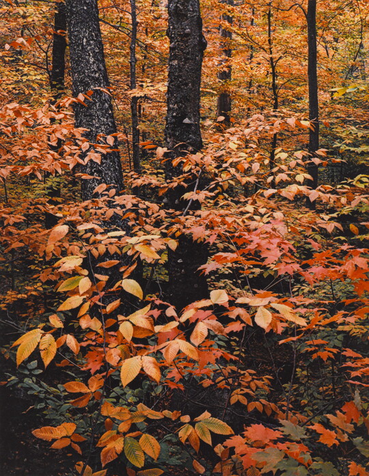 In 1990, Porter generously bequeathed to the Museum his archive, which includes over 9,000 prints. Beyond the most complete holdings of his artwork anywhere, the collection also includes resources to help better understand Porter’s work: almost 90,000 negatives, slides, and transparencies; approximately 2,600 work prints; copies of his books, portfolios and albums; the Eliot Porter Papers; his 1,100-volume professional library; and equipment including his cameras, printing tools, and work table.