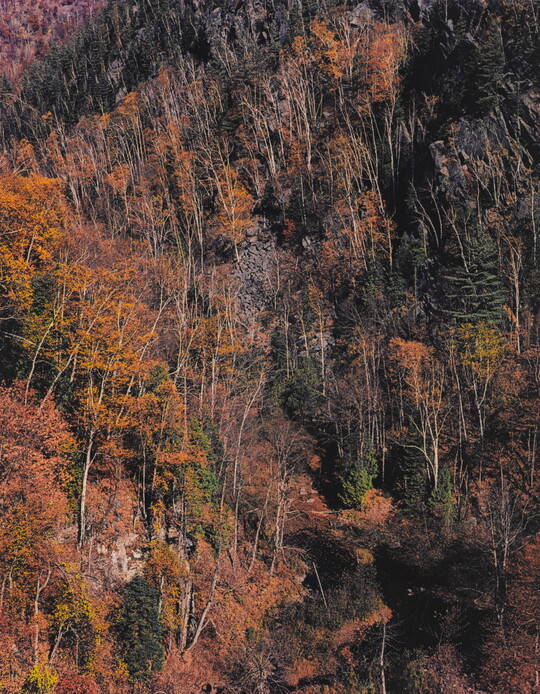 In 1990, Porter generously bequeathed to the Museum his archive, which includes over 9,000 prints. Beyond the most complete holdings of his artwork anywhere, the collection also includes resources to help better understand Porter’s work: almost 90,000 negatives, slides, and transparencies; approximately 2,600 work prints; copies of his books, portfolios and albums; the Eliot Porter Papers; his 1,100-volume professional library; and equipment including his cameras, printing tools, and work table.