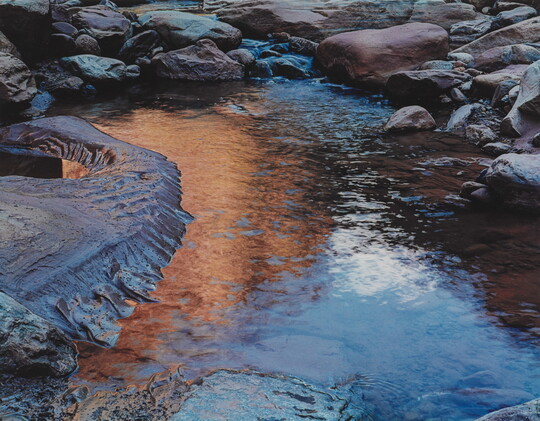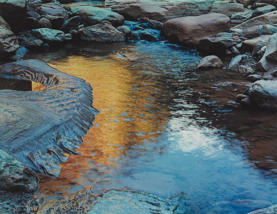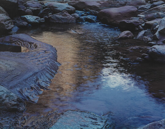 In 1990, Porter generously bequeathed to the Museum his archive, which includes over 9,000 prints. Beyond the most complete holdings of his artwork anywhere, the collection also includes resources to help better understand Porter’s work: almost 90,000 negatives, slides, and transparencies; approximately 2,600 work prints; copies of his books, portfolios and albums; the Eliot Porter Papers; his 1,100-volume professional library; and equipment including his cameras, printing tools, and work table.