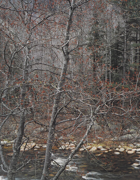 In 1990, Porter generously bequeathed to the Museum his archive, which includes over 9,000 prints. Beyond the most complete holdings of his artwork anywhere, the collection also includes resources to help better understand Porter’s work: almost 90,000 negatives, slides, and transparencies; approximately 2,600 work prints; copies of his books, portfolios and albums; the Eliot Porter Papers; his 1,100-volume professional library; and equipment including his cameras, printing tools, and work table.