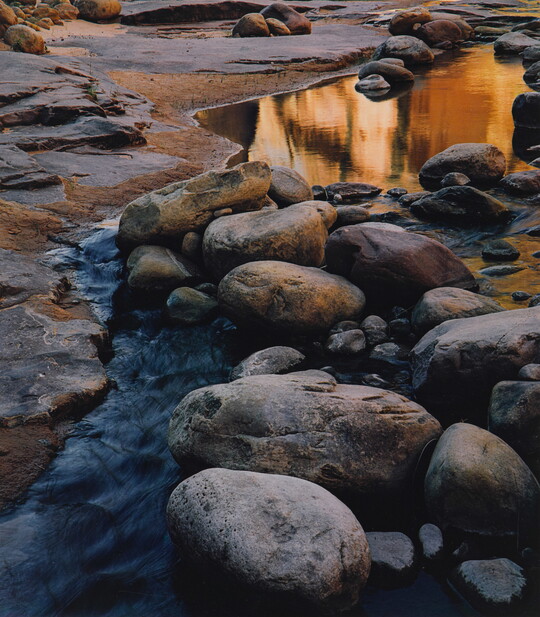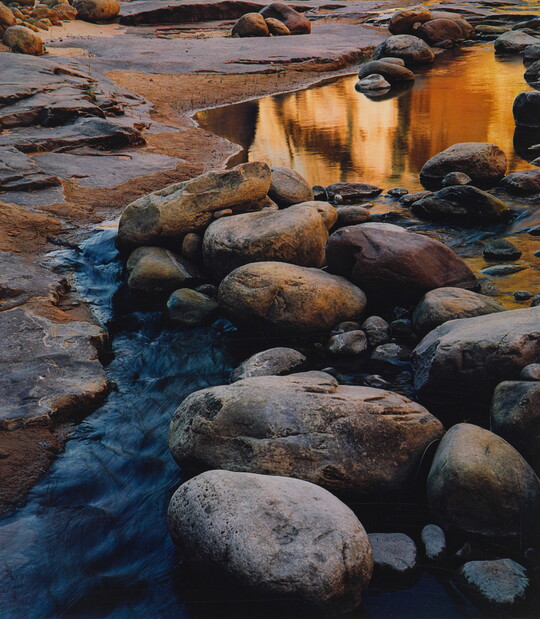 In 1990, Porter generously bequeathed to the Museum his archive, which includes over 9,000 prints. Beyond the most complete holdings of his artwork anywhere, the collection also includes resources to help better understand Porter’s work: almost 90,000 negatives, slides, and transparencies; approximately 2,600 work prints; copies of his books, portfolios and albums; the Eliot Porter Papers; his 1,100-volume professional library; and equipment including his cameras, printing tools, and work table.