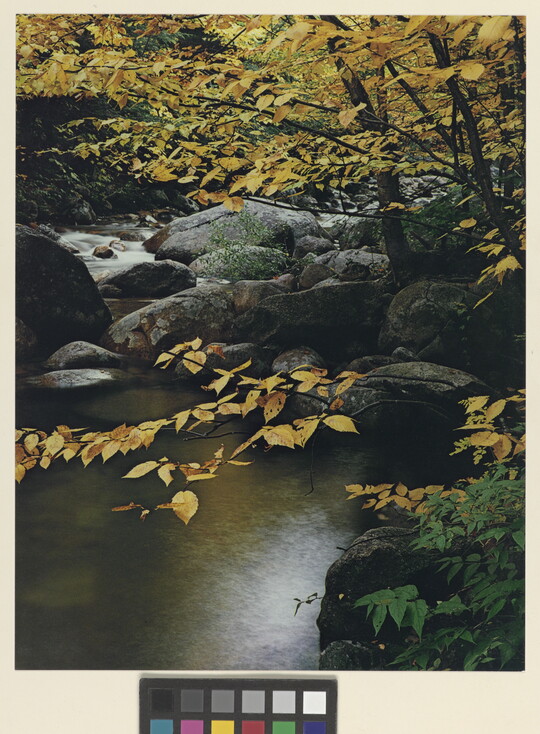 In 1990, Porter generously bequeathed to the Museum his archive, which includes over 9,000 prints. Beyond the most complete holdings of his artwork anywhere, the collection also includes resources to help better understand Porter’s work: almost 90,000 negatives, slides, and transparencies; approximately 2,600 work prints; copies of his books, portfolios and albums; the Eliot Porter Papers; his 1,100-volume professional library; and equipment including his cameras, printing tools, and work table.