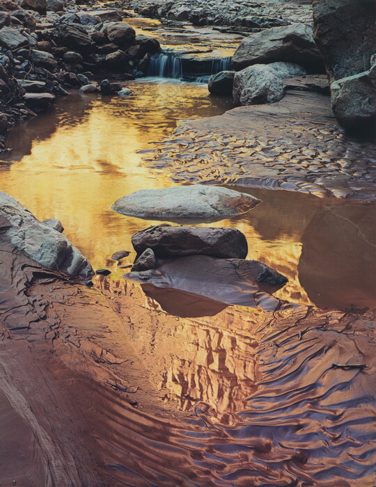 In 1990, Porter generously bequeathed to the Museum his archive, which includes over 9,000 prints. Beyond the most complete holdings of his artwork anywhere, the collection also includes resources to help better understand Porter’s work: almost 90,000 negatives, slides, and transparencies; approximately 2,600 work prints; copies of his books, portfolios and albums; the Eliot Porter Papers; his 1,100-volume professional library; and equipment including his cameras, printing tools, and work table.