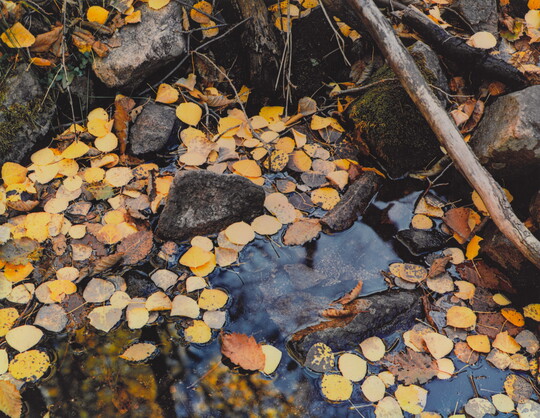 In 1990, Porter generously bequeathed to the Museum his archive, which includes over 9,000 prints. Beyond the most complete holdings of his artwork anywhere, the collection also includes resources to help better understand Porter’s work: almost 90,000 negatives, slides, and transparencies; approximately 2,600 work prints; copies of his books, portfolios and albums; the Eliot Porter Papers; his 1,100-volume professional library; and equipment including his cameras, printing tools, and work table.