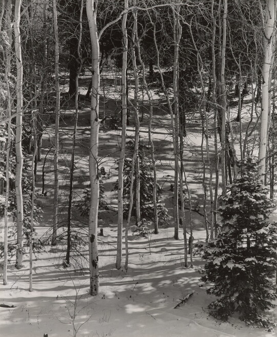 In 1990, Porter generously bequeathed to the Museum his archive, which includes over 9,000 prints. Beyond the most complete holdings of his artwork anywhere, the collection also includes resources to help better understand Porter’s work: almost 90,000 negatives, slides, and transparencies; approximately 2,600 work prints; copies of his books, portfolios and albums; the Eliot Porter Papers; his 1,100-volume professional library; and equipment including his cameras, printing tools, and work table.