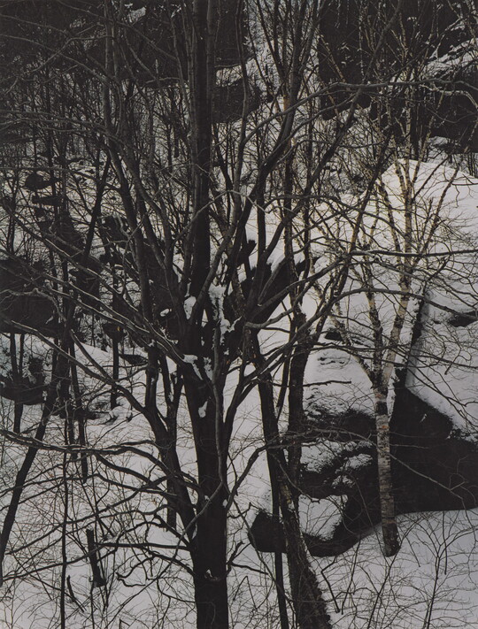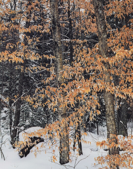 In 1990, Porter generously bequeathed to the Museum his archive, which includes over 9,000 prints. Beyond the most complete holdings of his artwork anywhere, the collection also includes resources to help better understand Porter’s work: almost 90,000 negatives, slides, and transparencies; approximately 2,600 work prints; copies of his books, portfolios and albums; the Eliot Porter Papers; his 1,100-volume professional library; and equipment including his cameras, printing tools, and work table.