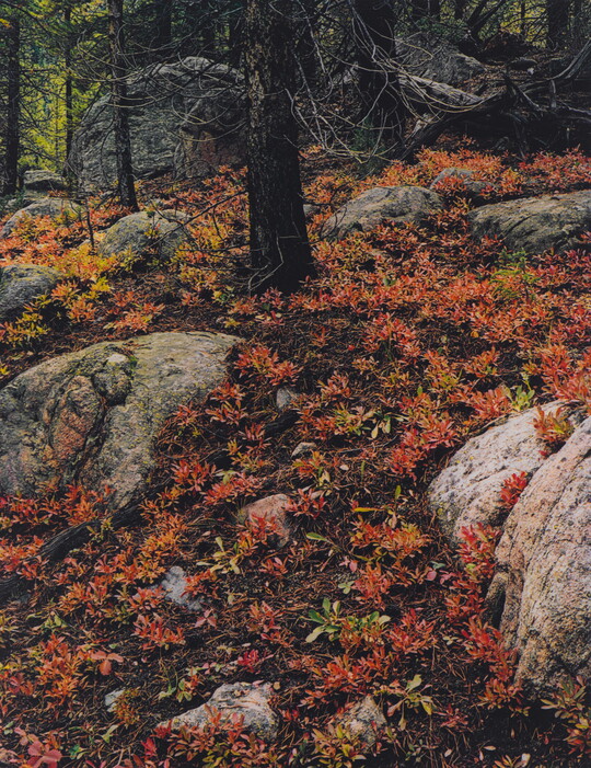 In 1990, Porter generously bequeathed to the Museum his archive, which includes over 9,000 prints. Beyond the most complete holdings of his artwork anywhere, the collection also includes resources to help better understand Porter’s work: almost 90,000 negatives, slides, and transparencies; approximately 2,600 work prints; copies of his books, portfolios and albums; the Eliot Porter Papers; his 1,100-volume professional library; and equipment including his cameras, printing tools, and work table.