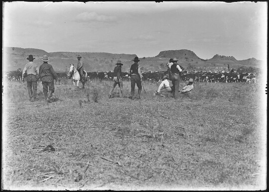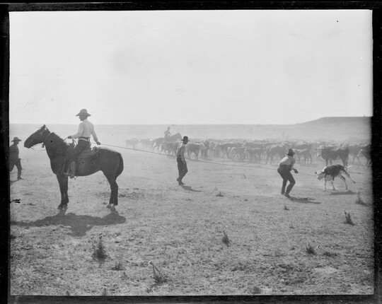 Growing up in Bonham, Texas, Erwin Smith knew he wanted to be a cowboy and an artist. The era of great trail drives was ending, and he was determined to document the open-range lifestyle before it disappeared completely. Smith gained experience by working on ranches and studying painting and sculpting at art schools in Chicago and Boston before he realized that the photographs he used as preliminary studies were works of art themselves. Between 1905 and the mid-1920s, he photographed ranch work and life in Arizona, New Mexico, and Texas, producing some of the best-known images of early 20th-century cowboy activities. The Carter holds about 150 prints by Smith, many gifted by Smith’s half-sister, Mary Alice Pettis, as well as 2,000 negatives on permanent deposit from the Library of Congress.