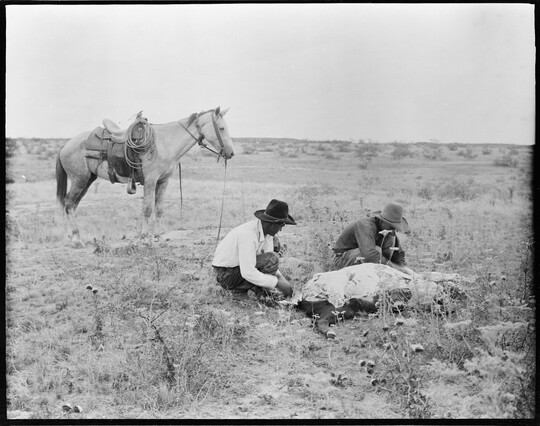 Growing up in Bonham, Texas, Erwin Smith knew he wanted to be a cowboy and an artist. The era of great trail drives was ending, and he was determined to document the open-range lifestyle before it disappeared completely. Smith gained experience by working on ranches and studying painting and sculpting at art schools in Chicago and Boston before he realized that the photographs he used as preliminary studies were works of art themselves. Between 1905 and the mid-1920s, he photographed ranch work and life in Arizona, New Mexico, and Texas, producing some of the best-known images of early 20th-century cowboy activities. The Carter holds about 150 prints by Smith, many gifted by Smith’s half-sister, Mary Alice Pettis, as well as 2,000 negatives on permanent deposit from the Library of Congress.