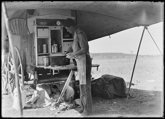 Growing up in Bonham, Texas, Erwin Smith knew he wanted to be a cowboy and an artist. The era of great trail drives was ending, and he was determined to document the open-range lifestyle before it disappeared completely. Smith gained experience by working on ranches and studying painting and sculpting at art schools in Chicago and Boston before he realized that the photographs he used as preliminary studies were works of art themselves. Between 1905 and the mid-1920s, he photographed ranch work and life in Arizona, New Mexico, and Texas, producing some of the best-known images of early 20th-century cowboy activities. The Carter holds about 150 prints by Smith, many gifted by Smith’s half-sister, Mary Alice Pettis, as well as 2,000 negatives on permanent deposit from the Library of Congress.
