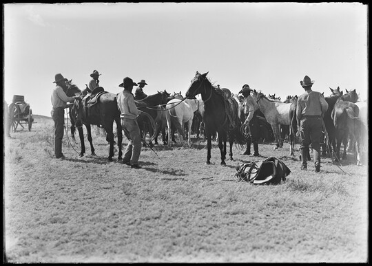 Growing up in Bonham, Texas, Erwin Smith knew he wanted to be a cowboy and an artist. The era of great trail drives was ending, and he was determined to document the open-range lifestyle before it disappeared completely. Smith gained experience by working on ranches and studying painting and sculpting at art schools in Chicago and Boston before he realized that the photographs he used as preliminary studies were works of art themselves. Between 1905 and the mid-1920s, he photographed ranch work and life in Arizona, New Mexico, and Texas, producing some of the best-known images of early 20th-century cowboy activities. The Carter holds about 150 prints by Smith, many gifted by Smith’s half-sister, Mary Alice Pettis, as well as 2,000 negatives on permanent deposit from the Library of Congress.
