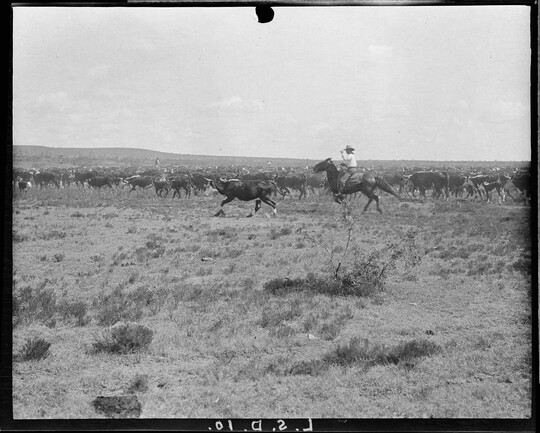 Growing up in Bonham, Texas, Erwin Smith knew he wanted to be a cowboy and an artist. The era of great trail drives was ending, and he was determined to document the open-range lifestyle before it disappeared completely. Smith gained experience by working on ranches and studying painting and sculpting at art schools in Chicago and Boston before he realized that the photographs he used as preliminary studies were works of art themselves. Between 1905 and the mid-1920s, he photographed ranch work and life in Arizona, New Mexico, and Texas, producing some of the best-known images of early 20th-century cowboy activities. The Carter holds about 150 prints by Smith, many gifted by Smith’s half-sister, Mary Alice Pettis, as well as 2,000 negatives on permanent deposit from the Library of Congress.