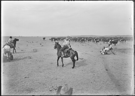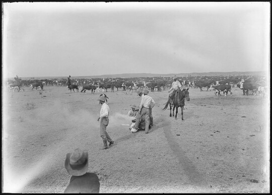 Growing up in Bonham, Texas, Erwin Smith knew he wanted to be a cowboy and an artist. The era of great trail drives was ending, and he was determined to document the open-range lifestyle before it disappeared completely. Smith gained experience by working on ranches and studying painting and sculpting at art schools in Chicago and Boston before he realized that the photographs he used as preliminary studies were works of art themselves. Between 1905 and the mid-1920s, he photographed ranch work and life in Arizona, New Mexico, and Texas, producing some of the best-known images of early 20th-century cowboy activities. The Carter holds about 150 prints by Smith, many gifted by Smith’s half-sister, Mary Alice Pettis, as well as 2,000 negatives on permanent deposit from the Library of Congress.