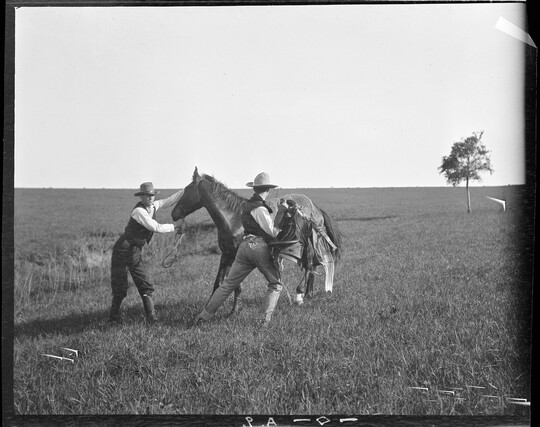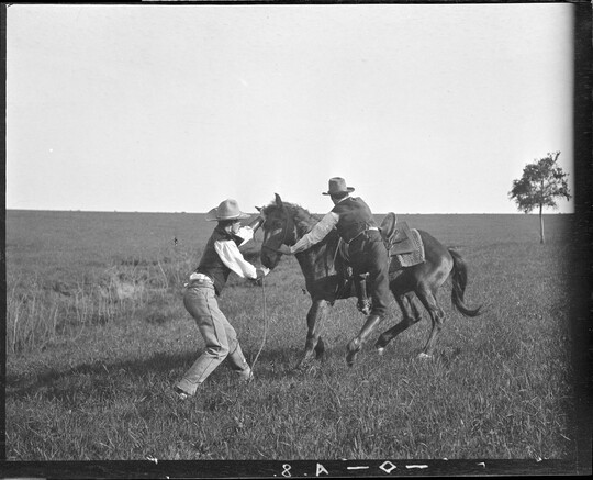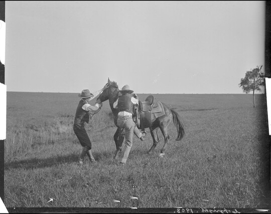 Growing up in Bonham, Texas, Erwin Smith knew he wanted to be a cowboy and an artist. The era of great trail drives was ending, and he was determined to document the open-range lifestyle before it disappeared completely. Smith gained experience by working on ranches and studying painting and sculpting at art schools in Chicago and Boston before he realized that the photographs he used as preliminary studies were works of art themselves. Between 1905 and the mid-1920s, he photographed ranch work and life in Arizona, New Mexico, and Texas, producing some of the best-known images of early 20th-century cowboy activities. The Carter holds about 150 prints by Smith, many gifted by Smith’s half-sister, Mary Alice Pettis, as well as 2,000 negatives on permanent deposit from the Library of Congress.