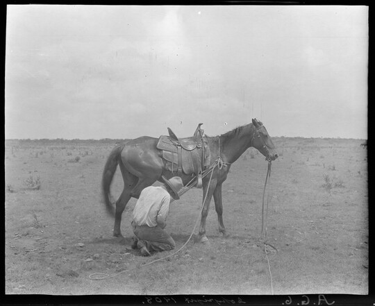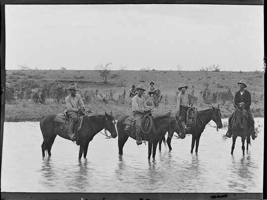 Growing up in Bonham, Texas, Erwin Smith knew he wanted to be a cowboy and an artist. The era of great trail drives was ending, and he was determined to document the open-range lifestyle before it disappeared completely. Smith gained experience by working on ranches and studying painting and sculpting at art schools in Chicago and Boston before he realized that the photographs he used as preliminary studies were works of art themselves. Between 1905 and the mid-1920s, he photographed ranch work and life in Arizona, New Mexico, and Texas, producing some of the best-known images of early 20th-century cowboy activities. The Carter holds about 150 prints by Smith, many gifted by Smith’s half-sister, Mary Alice Pettis, as well as 2,000 negatives on permanent deposit from the Library of Congress.