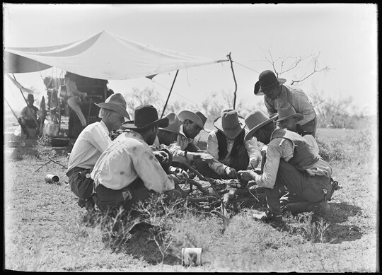 Growing up in Bonham, Texas, Erwin Smith knew he wanted to be a cowboy and an artist. The era of great trail drives was ending, and he was determined to document the open-range lifestyle before it disappeared completely. Smith gained experience by working on ranches and studying painting and sculpting at art schools in Chicago and Boston before he realized that the photographs he used as preliminary studies were works of art themselves. Between 1905 and the mid-1920s, he photographed ranch work and life in Arizona, New Mexico, and Texas, producing some of the best-known images of early 20th-century cowboy activities. The Carter holds about 150 prints by Smith, many gifted by Smith’s half-sister, Mary Alice Pettis, as well as 2,000 negatives on permanent deposit from the Library of Congress.