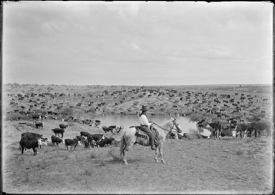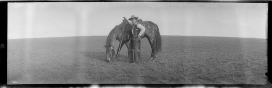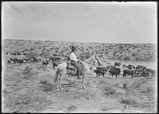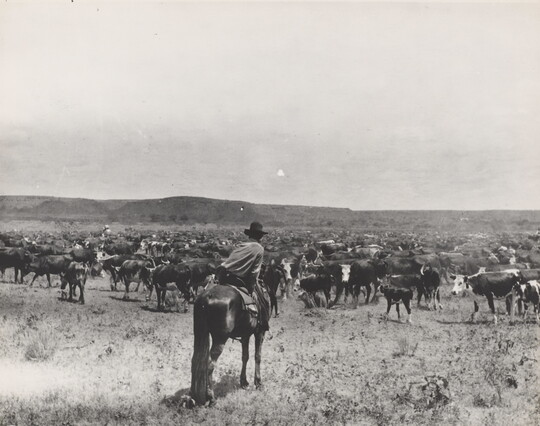 Growing up in Bonham, Texas, Erwin Smith knew he wanted to be a cowboy and an artist. The era of great trail drives was ending, and he was determined to document the open-range lifestyle before it disappeared completely. Smith gained experience by working on ranches and studying painting and sculpting at art schools in Chicago and Boston before he realized that the photographs he used as preliminary studies were works of art themselves. Between 1905 and the mid-1920s, he photographed ranch work and life in Arizona, New Mexico, and Texas, producing some of the best-known images of early 20th-century cowboy activities. The Carter holds about 150 prints by Smith, many gifted by Smith’s half-sister, Mary Alice Pettis, as well as 2,000 negatives on permanent deposit from the Library of Congress.