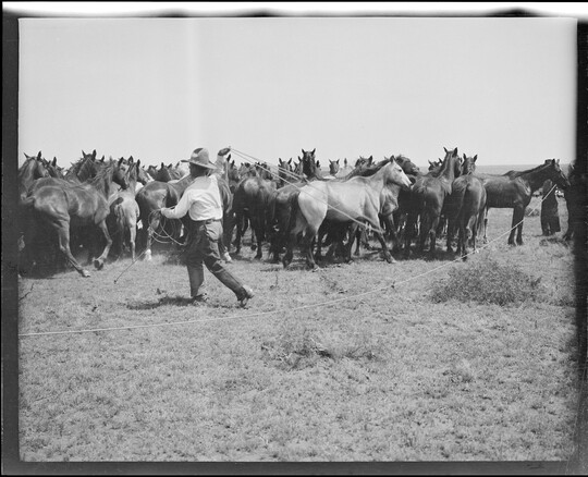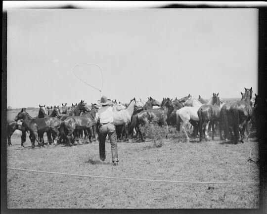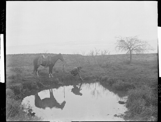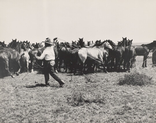 Growing up in Bonham, Texas, Erwin Smith knew he wanted to be a cowboy and an artist. The era of great trail drives was ending, and he was determined to document the open-range lifestyle before it disappeared completely. Smith gained experience by working on ranches and studying painting and sculpting at art schools in Chicago and Boston before he realized that the photographs he used as preliminary studies were works of art themselves. Between 1905 and the mid-1920s, he photographed ranch work and life in Arizona, New Mexico, and Texas, producing some of the best-known images of early 20th-century cowboy activities. The Carter holds about 150 prints by Smith, many gifted by Smith’s half-sister, Mary Alice Pettis, as well as 2,000 negatives on permanent deposit from the Library of Congress.