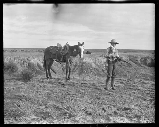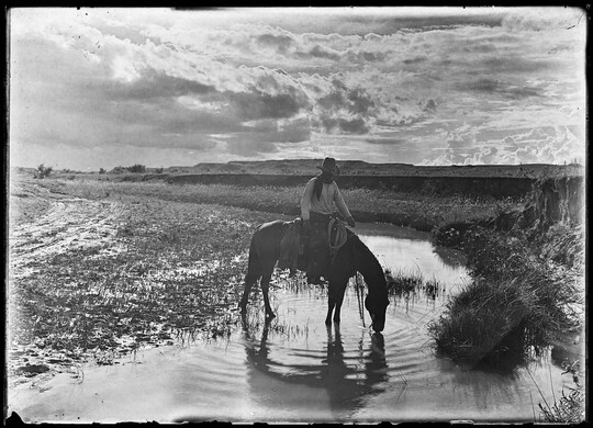 Growing up in Bonham, Texas, Erwin Smith knew he wanted to be a cowboy and an artist. The era of great trail drives was ending, and he was determined to document the open-range lifestyle before it disappeared completely. Smith gained experience by working on ranches and studying painting and sculpting at art schools in Chicago and Boston before he realized that the photographs he used as preliminary studies were works of art themselves. Between 1905 and the mid-1920s, he photographed ranch work and life in Arizona, New Mexico, and Texas, producing some of the best-known images of early 20th-century cowboy activities. The Carter holds about 150 prints by Smith, many gifted by Smith’s half-sister, Mary Alice Pettis, as well as 2,000 negatives on permanent deposit from the Library of Congress.