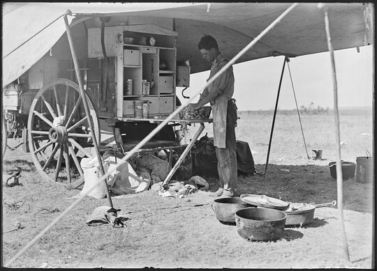 Growing up in Bonham, Texas, Erwin Smith knew he wanted to be a cowboy and an artist. The era of great trail drives was ending, and he was determined to document the open-range lifestyle before it disappeared completely. Smith gained experience by working on ranches and studying painting and sculpting at art schools in Chicago and Boston before he realized that the photographs he used as preliminary studies were works of art themselves. Between 1905 and the mid-1920s, he photographed ranch work and life in Arizona, New Mexico, and Texas, producing some of the best-known images of early 20th-century cowboy activities. The Carter holds about 150 prints by Smith, many gifted by Smith’s half-sister, Mary Alice Pettis, as well as 2,000 negatives on permanent deposit from the Library of Congress.