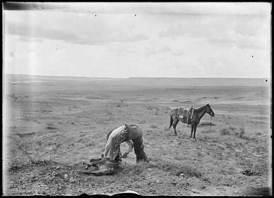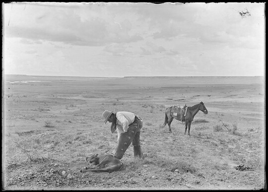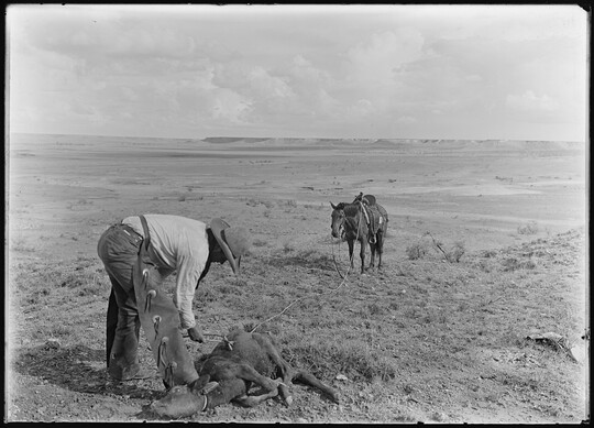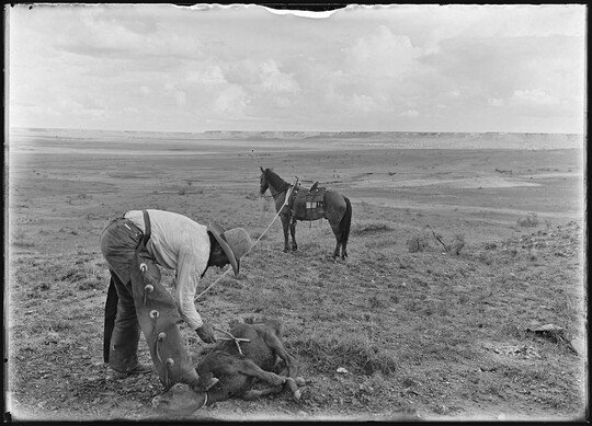 Growing up in Bonham, Texas, Erwin Smith knew he wanted to be a cowboy and an artist. The era of great trail drives was ending, and he was determined to document the open-range lifestyle before it disappeared completely. Smith gained experience by working on ranches and studying painting and sculpting at art schools in Chicago and Boston before he realized that the photographs he used as preliminary studies were works of art themselves. Between 1905 and the mid-1920s, he photographed ranch work and life in Arizona, New Mexico, and Texas, producing some of the best-known images of early 20th-century cowboy activities. The Carter holds about 150 prints by Smith, many gifted by Smith’s half-sister, Mary Alice Pettis, as well as 2,000 negatives on permanent deposit from the Library of Congress.