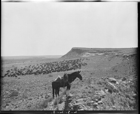 Growing up in Bonham, Texas, Erwin Smith knew he wanted to be a cowboy and an artist. The era of great trail drives was ending, and he was determined to document the open-range lifestyle before it disappeared completely. Smith gained experience by working on ranches and studying painting and sculpting at art schools in Chicago and Boston before he realized that the photographs he used as preliminary studies were works of art themselves. Between 1905 and the mid-1920s, he photographed ranch work and life in Arizona, New Mexico, and Texas, producing some of the best-known images of early 20th-century cowboy activities. The Carter holds about 150 prints by Smith, many gifted by Smith’s half-sister, Mary Alice Pettis, as well as 2,000 negatives on permanent deposit from the Library of Congress.
