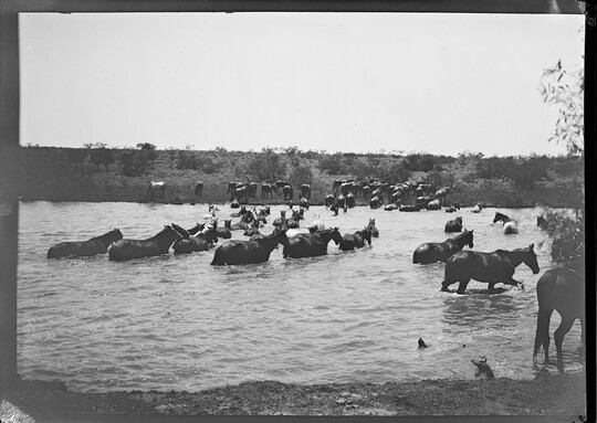 Growing up in Bonham, Texas, Erwin Smith knew he wanted to be a cowboy and an artist. The era of great trail drives was ending, and he was determined to document the open-range lifestyle before it disappeared completely. Smith gained experience by working on ranches and studying painting and sculpting at art schools in Chicago and Boston before he realized that the photographs he used as preliminary studies were works of art themselves. Between 1905 and the mid-1920s, he photographed ranch work and life in Arizona, New Mexico, and Texas, producing some of the best-known images of early 20th-century cowboy activities. The Carter holds about 150 prints by Smith, many gifted by Smith’s half-sister, Mary Alice Pettis, as well as 2,000 negatives on permanent deposit from the Library of Congress.