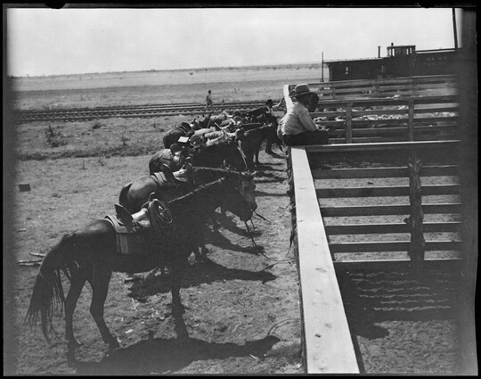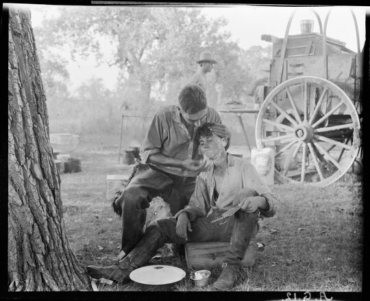 Growing up in Bonham, Texas, Erwin Smith knew he wanted to be a cowboy and an artist. The era of great trail drives was ending, and he was determined to document the open-range lifestyle before it disappeared completely. Smith gained experience by working on ranches and studying painting and sculpting at art schools in Chicago and Boston before he realized that the photographs he used as preliminary studies were works of art themselves. Between 1905 and the mid-1920s, he photographed ranch work and life in Arizona, New Mexico, and Texas, producing some of the best-known images of early 20th-century cowboy activities. The Carter holds about 150 prints by Smith, many gifted by Smith’s half-sister, Mary Alice Pettis, as well as 2,000 negatives on permanent deposit from the Library of Congress.