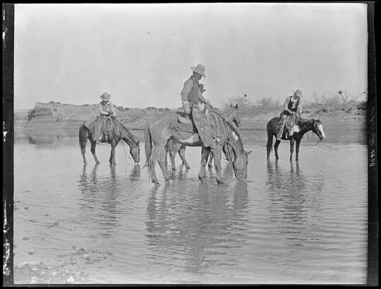 Growing up in Bonham, Texas, Erwin Smith knew he wanted to be a cowboy and an artist. The era of great trail drives was ending, and he was determined to document the open-range lifestyle before it disappeared completely. Smith gained experience by working on ranches and studying painting and sculpting at art schools in Chicago and Boston before he realized that the photographs he used as preliminary studies were works of art themselves. Between 1905 and the mid-1920s, he photographed ranch work and life in Arizona, New Mexico, and Texas, producing some of the best-known images of early 20th-century cowboy activities. The Carter holds about 150 prints by Smith, many gifted by Smith’s half-sister, Mary Alice Pettis, as well as 2,000 negatives on permanent deposit from the Library of Congress.