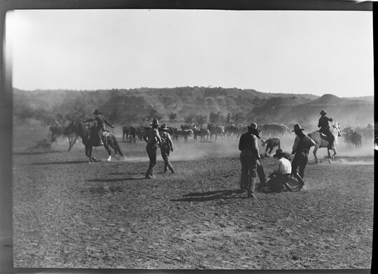 Growing up in Bonham, Texas, Erwin Smith knew he wanted to be a cowboy and an artist. The era of great trail drives was ending, and he was determined to document the open-range lifestyle before it disappeared completely. Smith gained experience by working on ranches and studying painting and sculpting at art schools in Chicago and Boston before he realized that the photographs he used as preliminary studies were works of art themselves. Between 1905 and the mid-1920s, he photographed ranch work and life in Arizona, New Mexico, and Texas, producing some of the best-known images of early 20th-century cowboy activities. The Carter holds about 150 prints by Smith, many gifted by Smith’s half-sister, Mary Alice Pettis, as well as 2,000 negatives on permanent deposit from the Library of Congress.