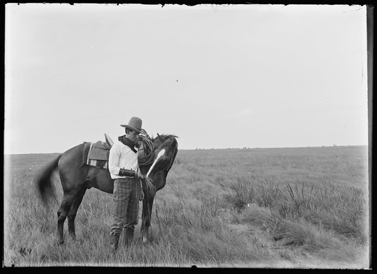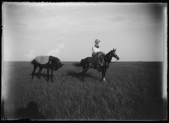 Growing up in Bonham, Texas, Erwin Smith knew he wanted to be a cowboy and an artist. The era of great trail drives was ending, and he was determined to document the open-range lifestyle before it disappeared completely. Smith gained experience by working on ranches and studying painting and sculpting at art schools in Chicago and Boston before he realized that the photographs he used as preliminary studies were works of art themselves. Between 1905 and the mid-1920s, he photographed ranch work and life in Arizona, New Mexico, and Texas, producing some of the best-known images of early 20th-century cowboy activities. The Carter holds about 150 prints by Smith, many gifted by Smith’s half-sister, Mary Alice Pettis, as well as 2,000 negatives on permanent deposit from the Library of Congress.
